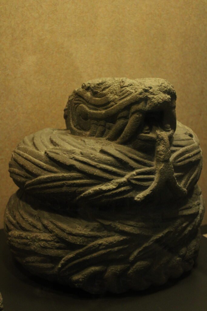 El Xiuhcóatl, conocido como la serpiente de fuego, es un arma y símbolo sagrado en la cultura mexica. Representaba la energía del sol, el calor y el poder divino. Se asociaba especialmente con Huitzilopochtli, quien la utilizaba como arma para vencer a la oscuridad. Su forma suele mostrarse como una serpiente estilizada con cuerpo segmentado y fuego enroscándose a lo largo de ella.